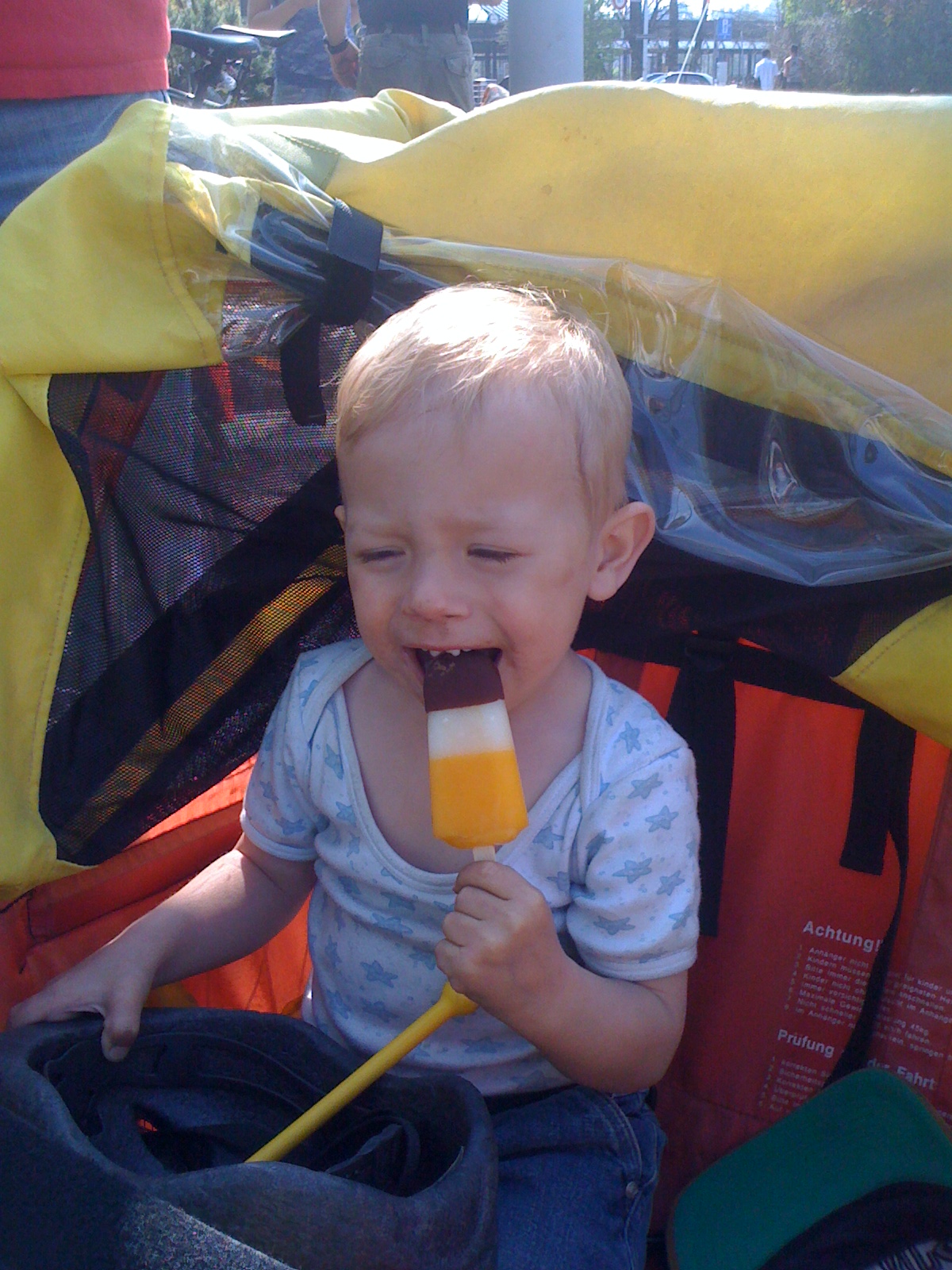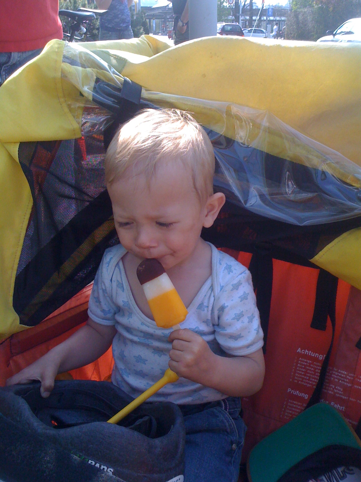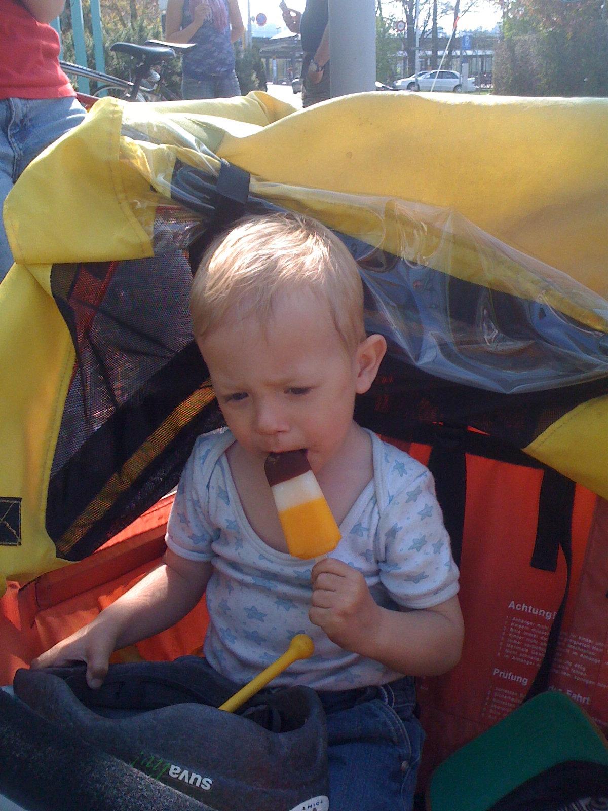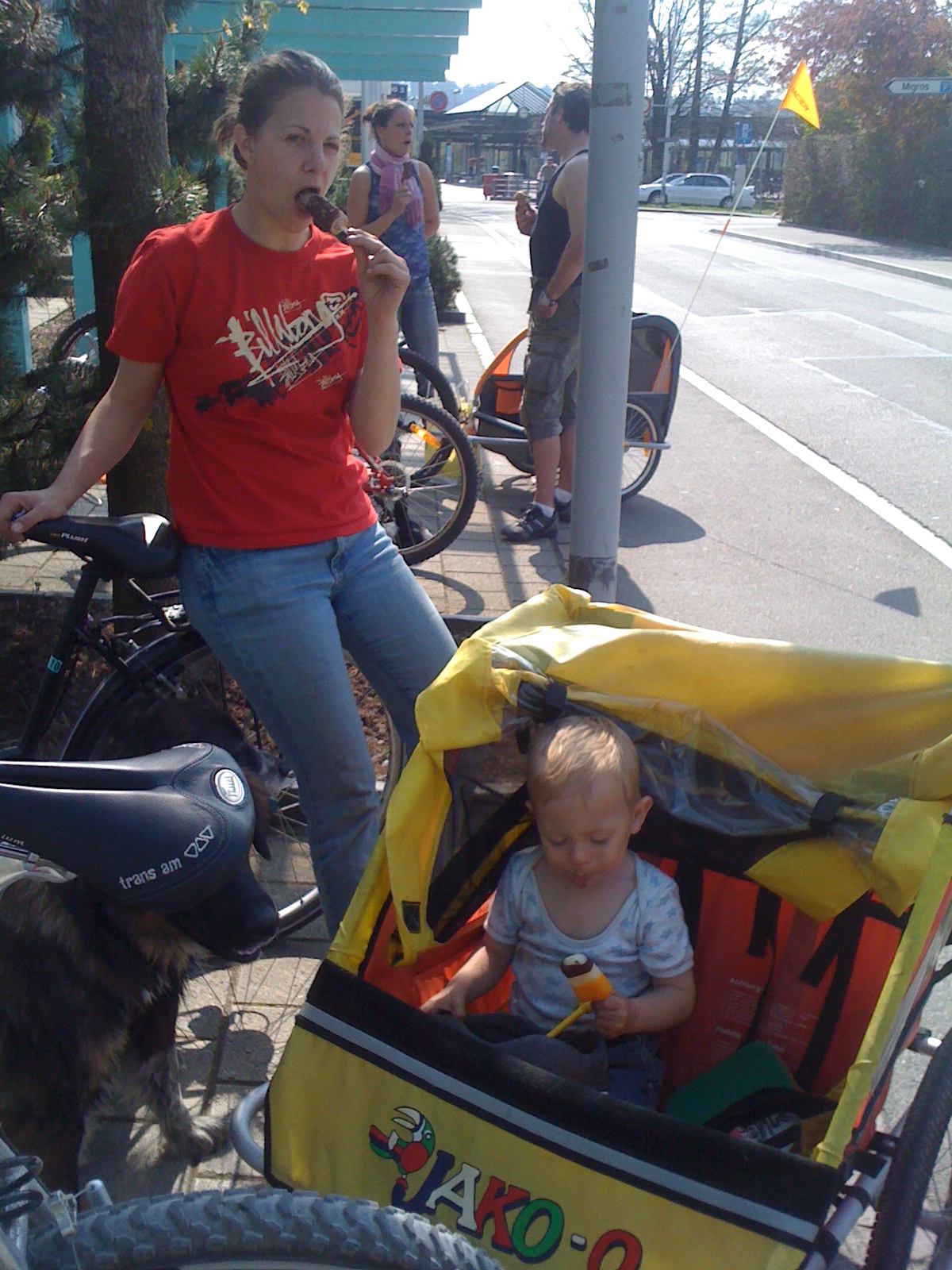 Ürigens: ich sitze da grad i eusem neue Velo-Aahänger – mit dem machemer sit ca. 2 Wuche immer ganz tolli Usfährtli und ich het eigentlich jede Tag Lust zum chli ‚umädüüse‘ (ich muen ja nöd trample :-))